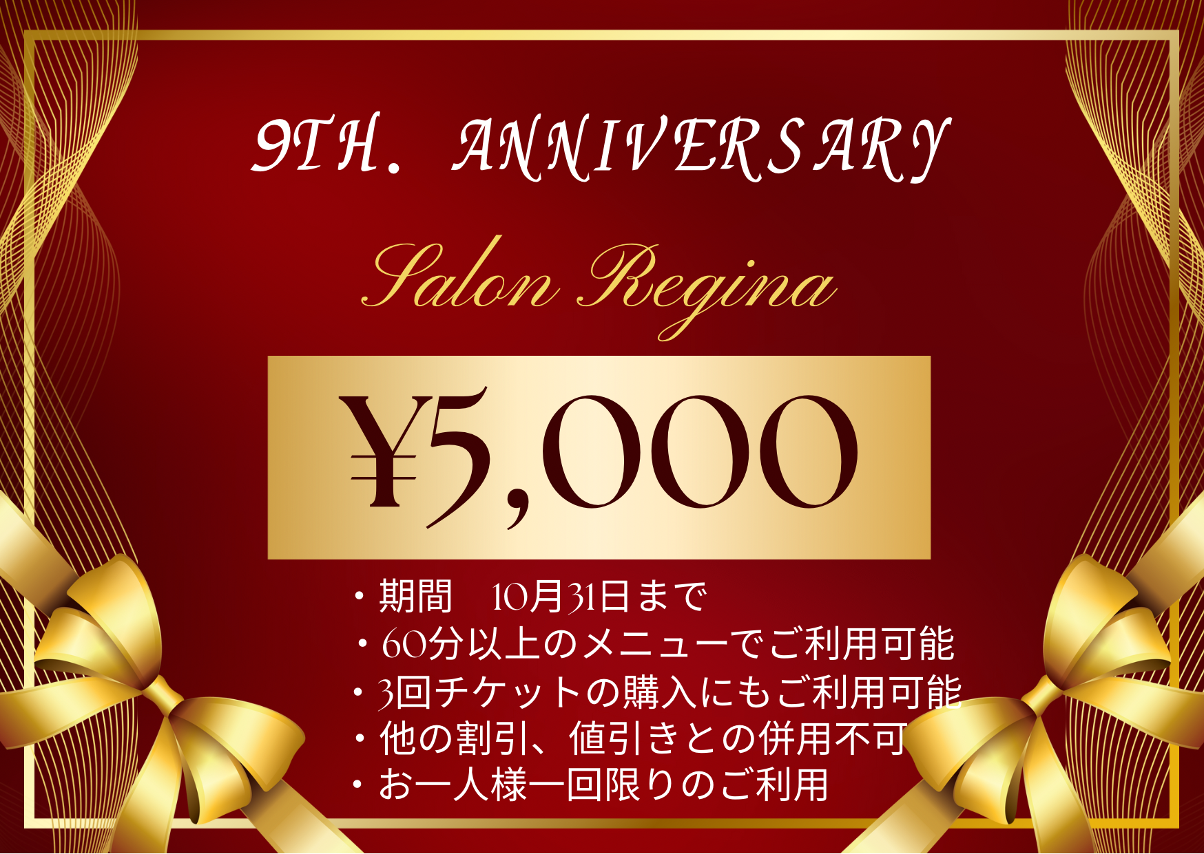 10月3日、サロン・レジーナは9周年を迎えます✨